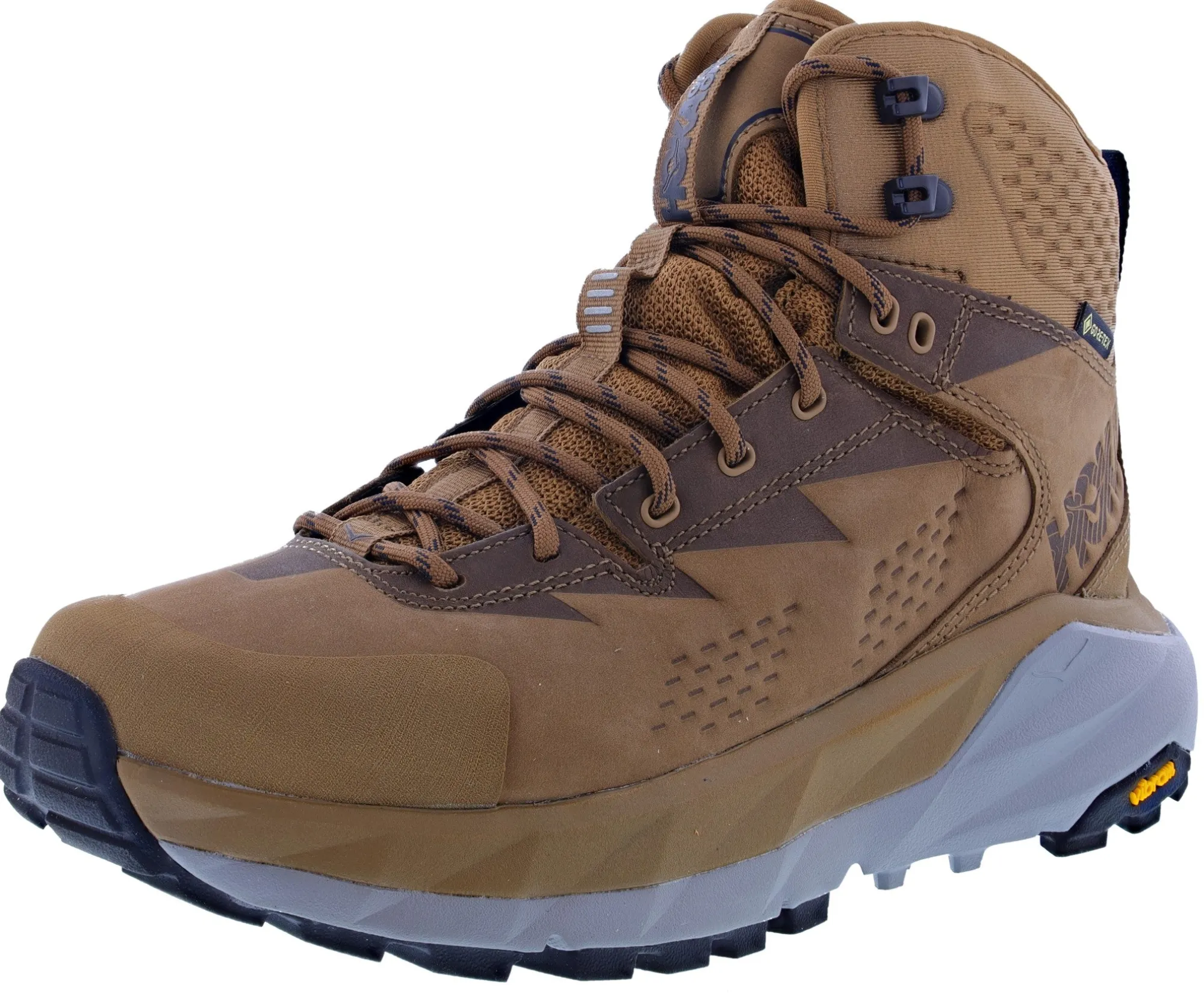 Named for the Māori word for strength and support, the Kaha GTX delivers both. With surprising speed, it makes the ups easier and the downs quicker. When hiking over long distances, this trekking shoe will deliver you to your destination in comfort and safety. Unequaled in its weight to- cushion ratio, the Kaha GTX offers the full HOKA package — proprietary foams, patented geometries and exceptional Vibram® Megagrip traction. Soft and smooth, but inherently supportive, the Kaha GTX features an GORE-TEX bootie that’ll keep your feet comfortable and dry regardless of the conditions. And an adjustable lacing system provides a lockdown fit regardless of your foot type. The world is your oyster.