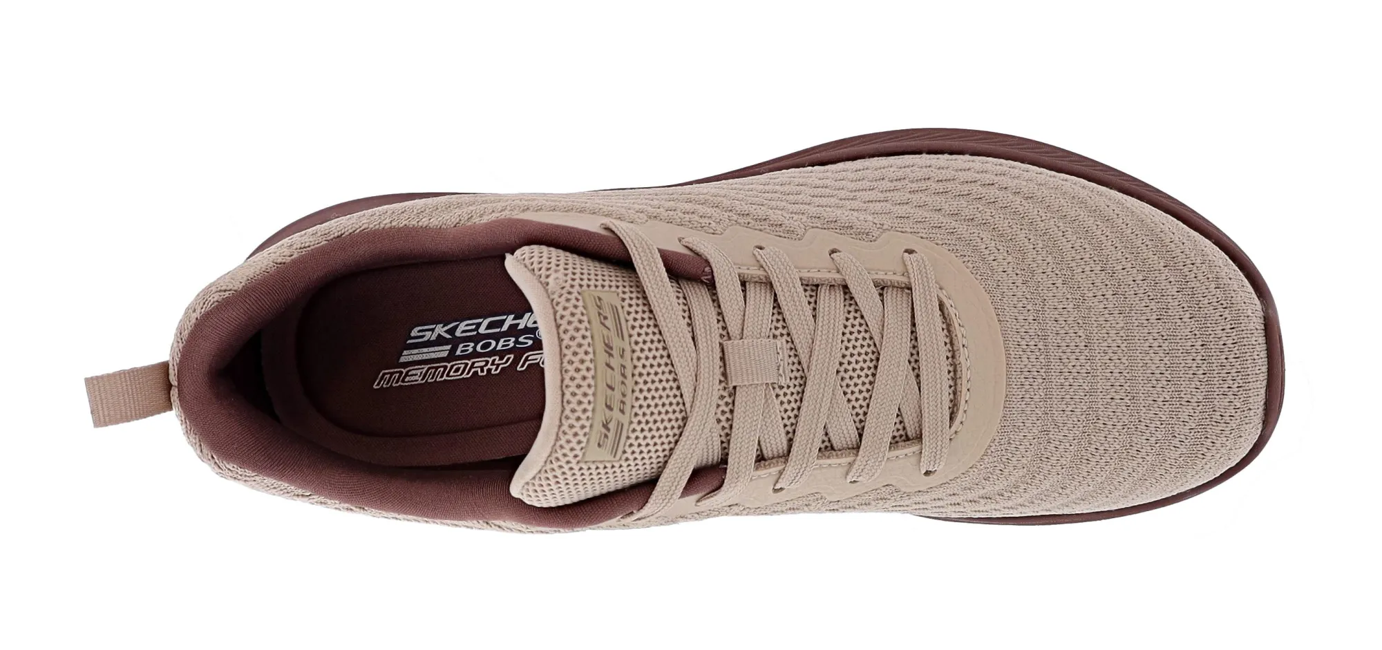 Take comfort in your give-back style with BOBS from Skechers Moda Flex – Mellow Dawn. This casual vegan design features a textured engineered knit upper with a lace-up front and a cushioned Skechers Memory Foam insole.