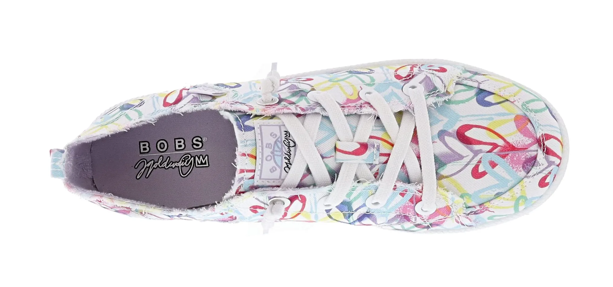 Show your love for rescues with BOBS from Skechers x JGoldcrown: BOBS B Cute 2.0 – Love Crown. This casual design features a ‘hearts’ printed canvas upper with tied-off decorative laces, and a cushioned Skechers Memory Foam insole.