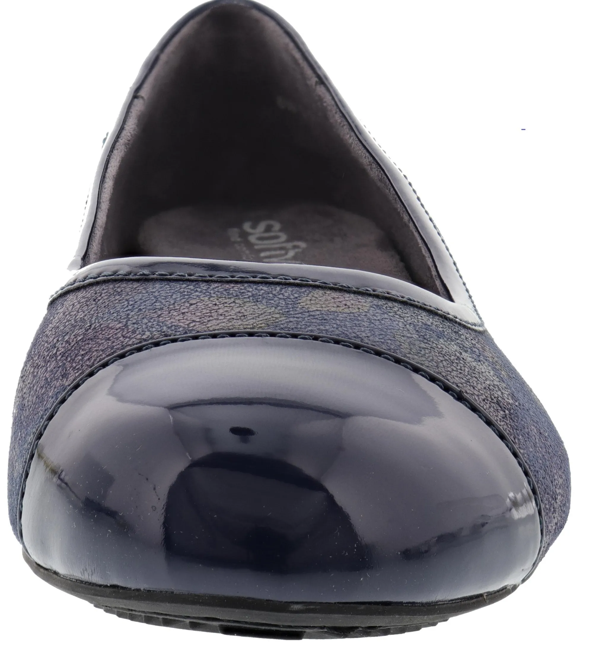 The SoftWalk Napa is an incredibly comfortable ballerina style with a low-profile cushioned footbed that includes a gentle arch support. The footbed uses both soft microfiber lining (with a colorful, fun pattern) and leather inserts for a secure and comfortable fit.
