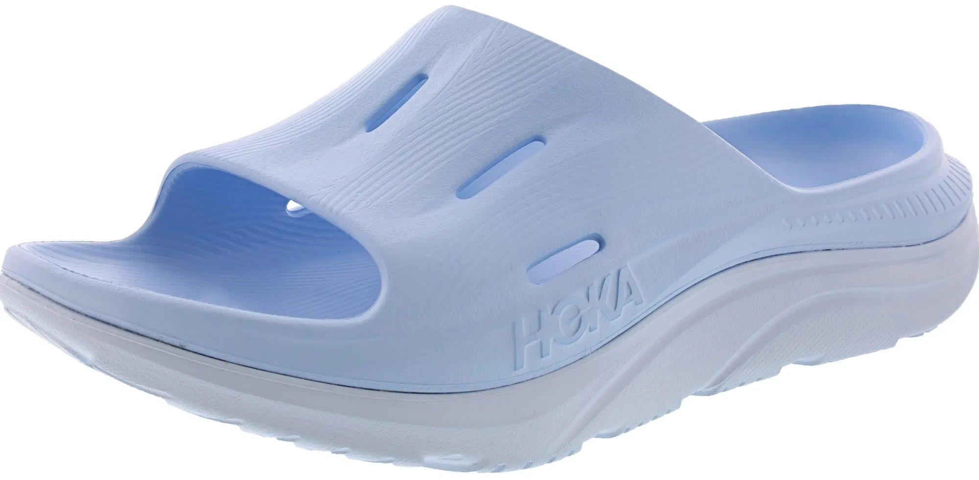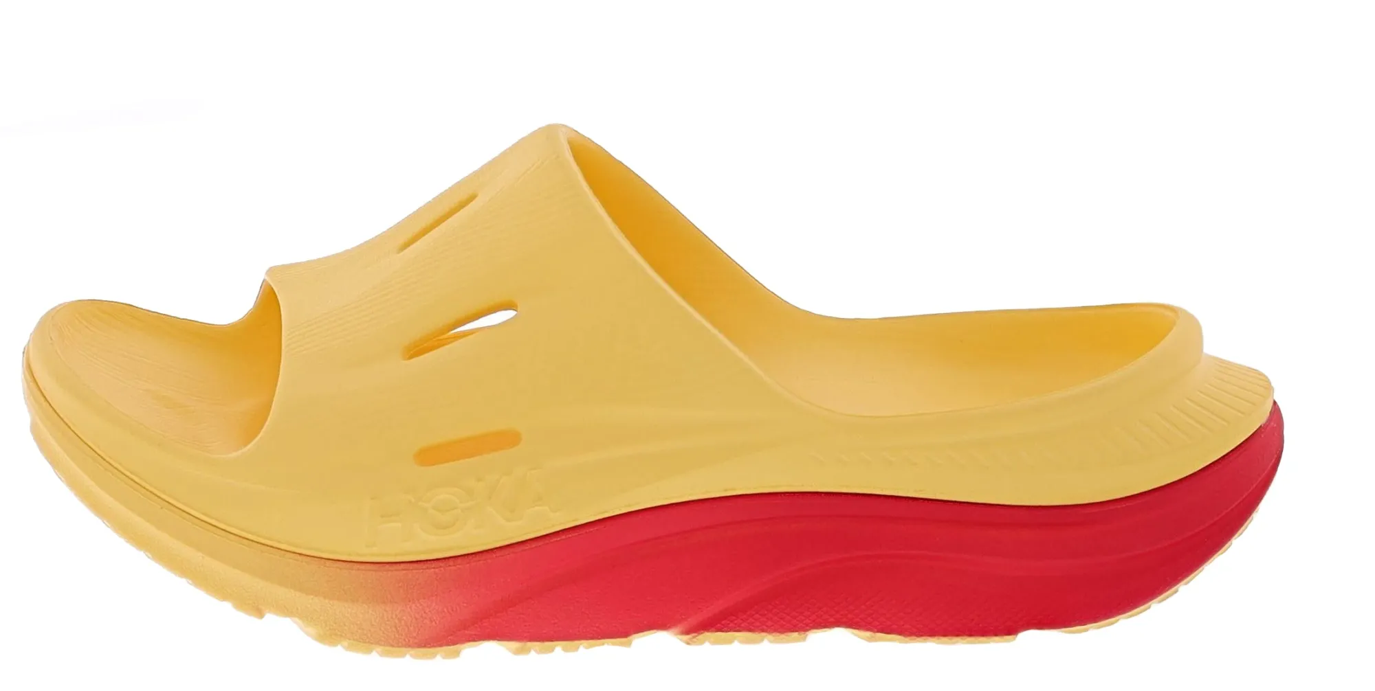 The Ora Recovery Slide 3 features a higher bed of soft cushion, designed to provide a forgiving impact and ride. The Ora Recovery Slide 3 contains features that make the shoe inherently stable, such as a wide base and our Active Foot Frame, for a moderate amount of stability that is still designed to work for neutral gaits.