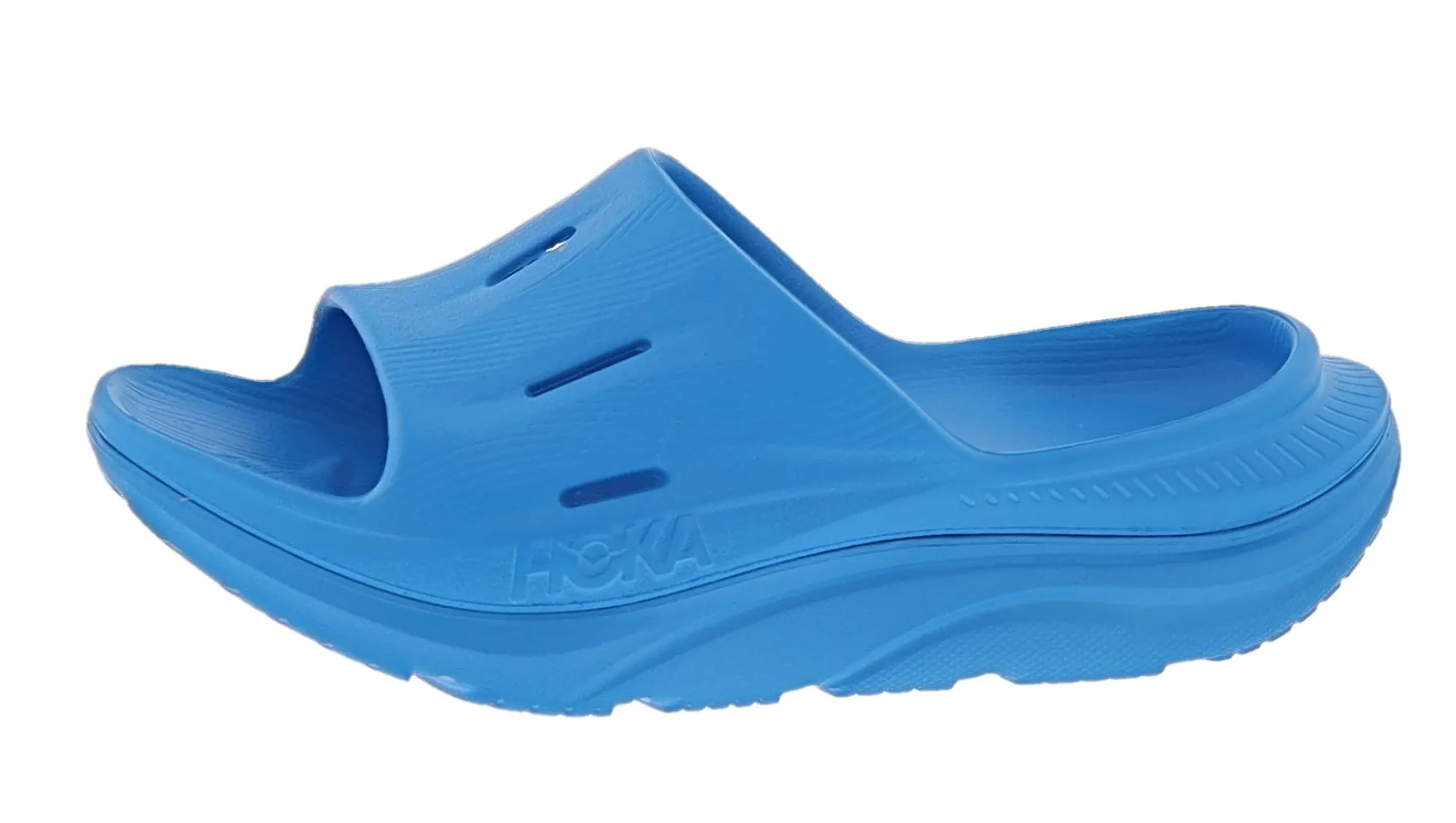 The Ora Recovery Slide 3 features a higher bed of soft cushion, designed to provide a forgiving impact and ride. The Ora Recovery Slide 3 contains features that make the shoe inherently stable, such as a wide base and our Active Foot Frame, for a moderate amount of stability that is still designed to work for neutral gaits.