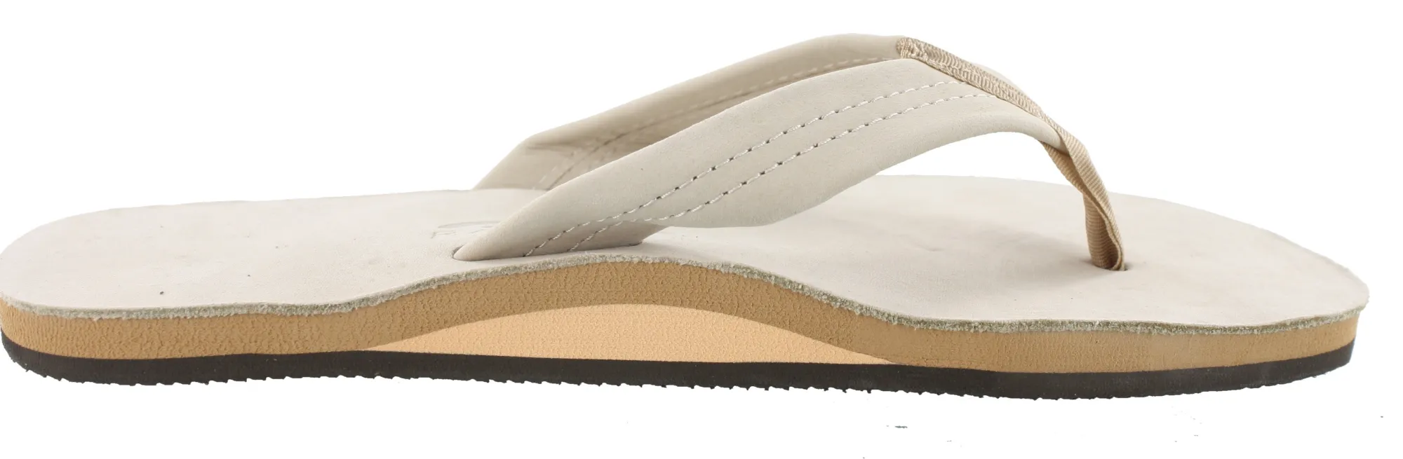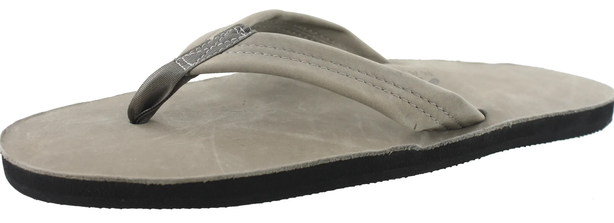The single layer rainbow men sandals is made with top grade nubuck leather; the top sole is embossed with the Rainbow logo. The strap on the Rainbow sandals mens flip flops, also nubuck leather; is double stitched, and the nylon toe piece is secured with a box X stitch, all using bonded nylon thread.