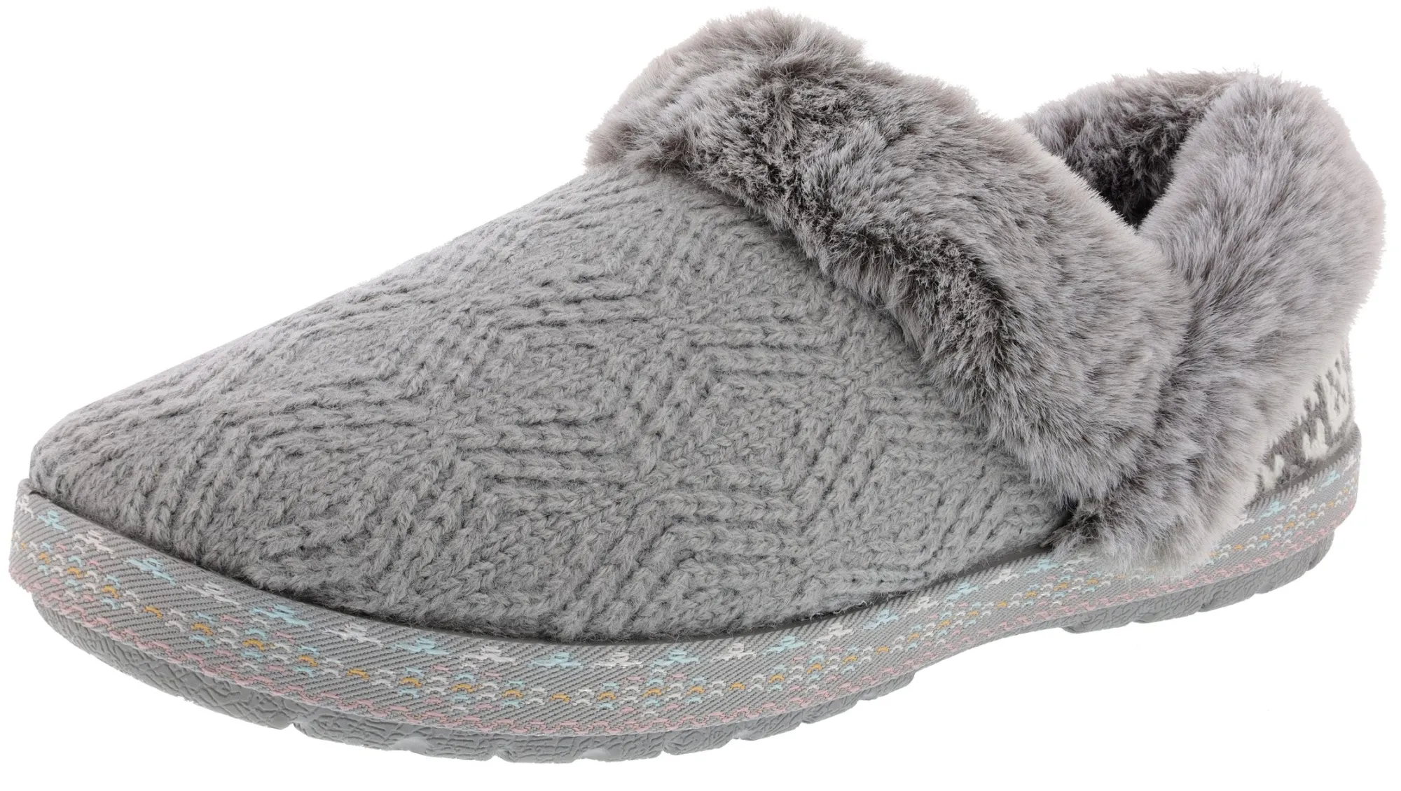 Skechers Bobs Too Cozy slippers Laid-back cozy style and warm comfort combine in BOBS from Skechers Too Cozy – Deco Drifter. These Bobs Skechers women slipper features a sweater knit upper with a geo pattern, faux-fur trim and lining. Women’s Skechers Bobs slippers offers a cushioned Skechers Memory Foam footbed.