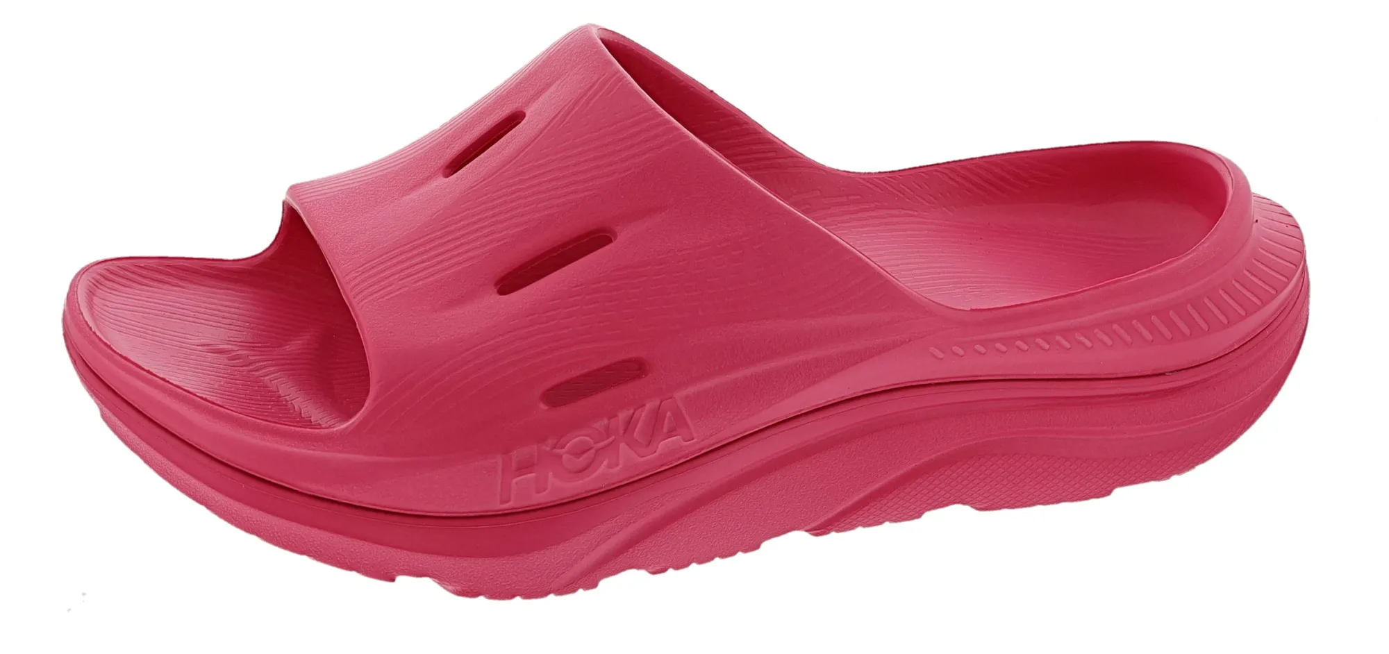 The Ora Recovery Slide 3 features a higher bed of soft cushion, designed to provide a forgiving impact and ride. The Ora Recovery Slide 3 contains features that make the shoe inherently stable, such as a wide base and our Active Foot Frame, for a moderate amount of stability that is still designed to work for neutral gaits.
